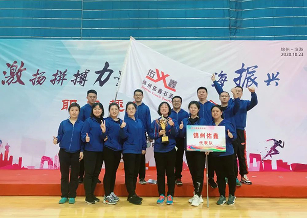 金秋十月,丹桂飄香。23日,由佑鑫公司工會(huì)主席王斌、總經(jīng)理陳總及研發(fā)部長李宗輝聯(lián)合帶隊(duì),我公司在錦州濱海體育中心體育館參加了由中共錦州濱海新區(qū)工作委員會(huì)、錦州濱海新區(qū)管理委員會(huì)共同主辦的2020年濱海新區(qū)”激揚(yáng)拼搏力量,助力濱海振興”職工趣味運(yùn)動(dòng)會(huì)。